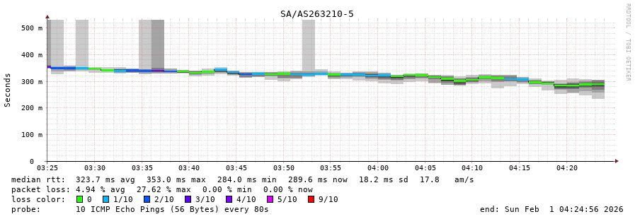 25. Median RTT 0.303 seconds